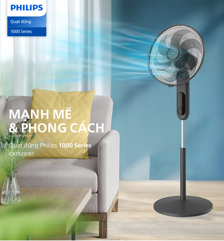 Quạt đứng Philips 6 cánh có điều khiển từ xa CX1520/01 - Bảo hành chính hãng 24 tháng