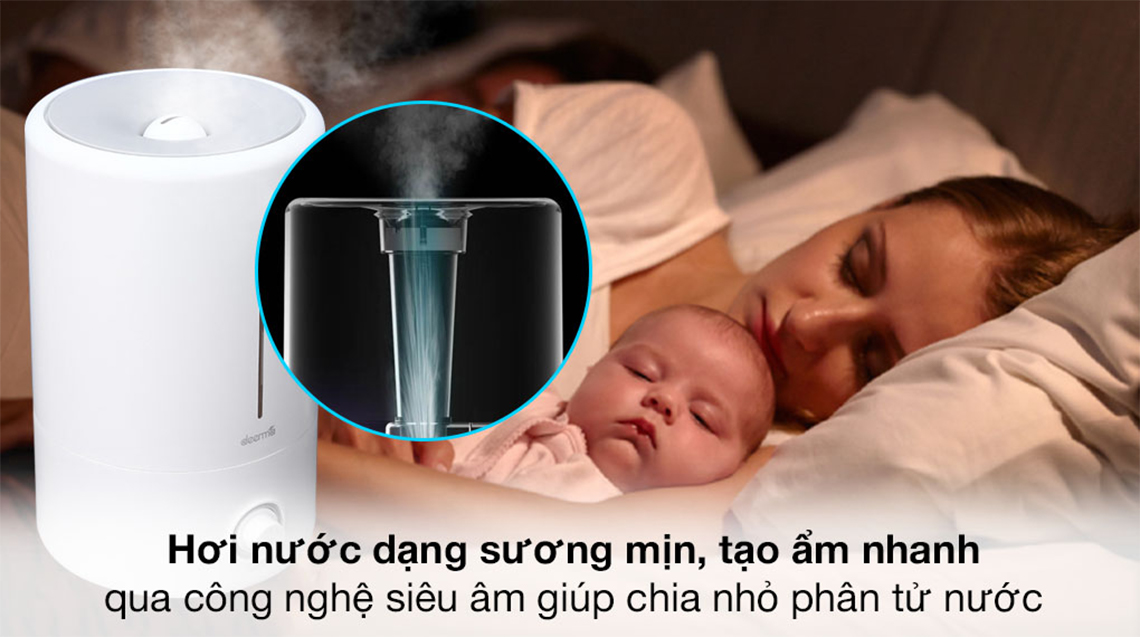 Máy tạo độ ẩm Deerma sử dụng khuếch tán hơi nước tạo ẩm cho không khí, cân bằng độ ẩm có lợi cho sức khỏe Giúp giải quyết vấn đề khô da, ho khan vào ban đêm (giúp bạn ngủ ngon suốt đêm), cảm cúm.