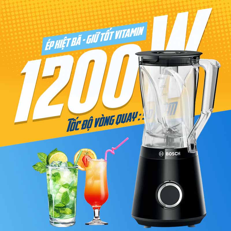 Nhờ sự kết hợp hoàn hảo giữa công suất mạnh, tốc độ cao và chế độ hoạt động linh hoạt, Bosch MMB6141B trở thành trợ thủ lý tưởng cho những ai yêu thích chế biến thực phẩm tại nhà, từ các món uống bổ dưỡng đến các món ăn cầu kỳ hơn như súp, nước sốt hay món ăn dưỡng sinh.