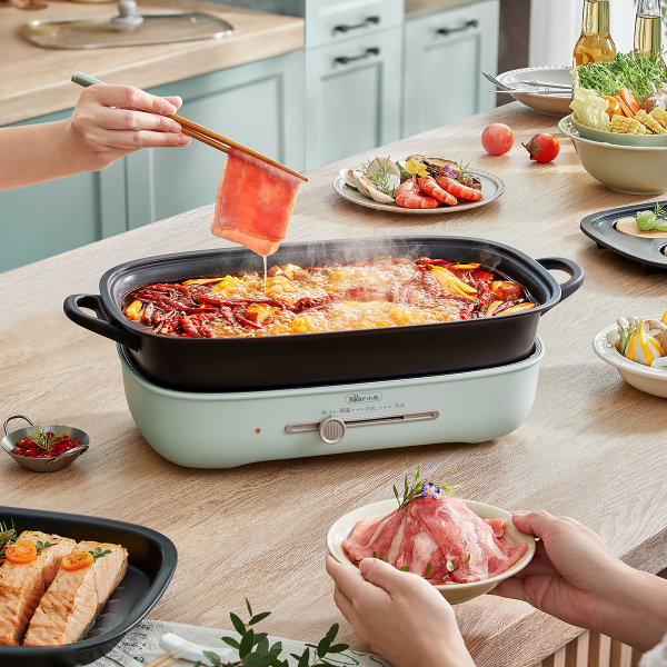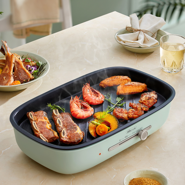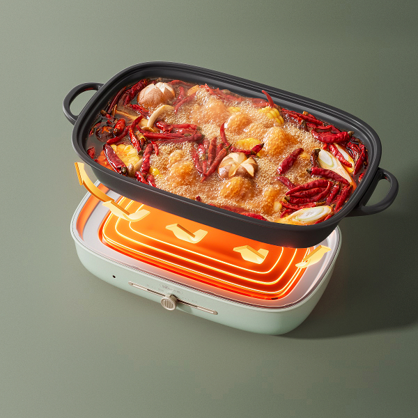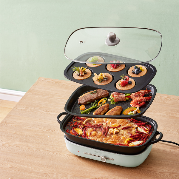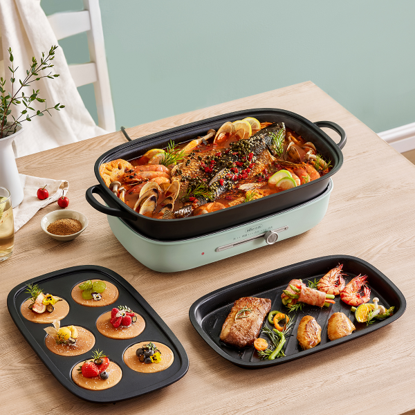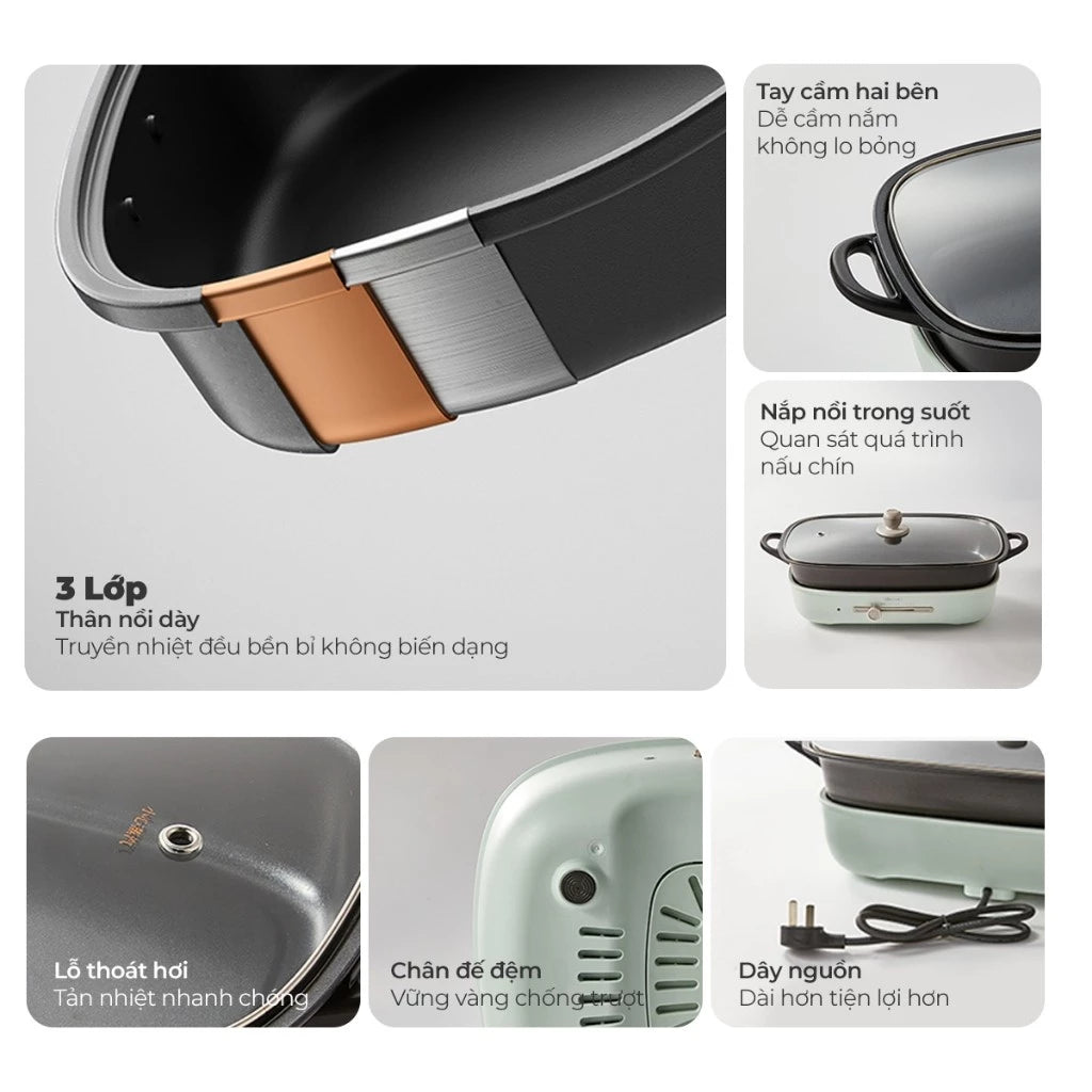 - Chức năng lẩu và nướng 2 khay: Thiết kế 2 khay nướng giúp bạn nướng thực phẩm như thịt, cá, rau củ một cách nhanh chóng và tiện lợi trong khi vẫn có thể nấu lẩu cùng lúc.